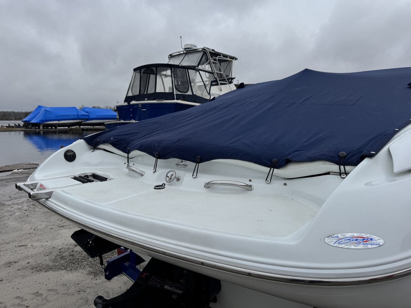 JUST IN!! 2006 Baja 275 BOSS, Powered by a Mercury 496 Mag HO and Bravo 1X Drive with ONLY 358hrs! This Boat Comes FULLY LOADED!! 30th Anniversary Graphics Package, Intergrated Swim Platform with Flip Down Re Boarding Ladder, Large Rear Sun Pad, Spacious Rear Bench Seat, Dual Captains Drop Out Bolster Seats, Walk Thru Windshield, Lenco Trim Tabs, Corsa Captains Call Silent Choice, Livorsi Gauges, Spacious Cuddy, Clarion Stereo and More! Comes With Cockpit Cover, Mooring Cover, Bimini Top and Matching Tandem Axle Trailer.