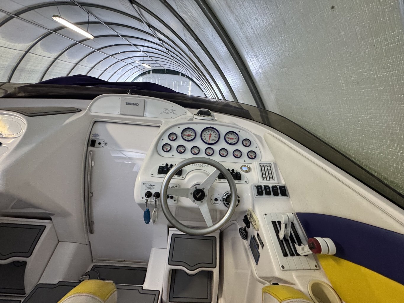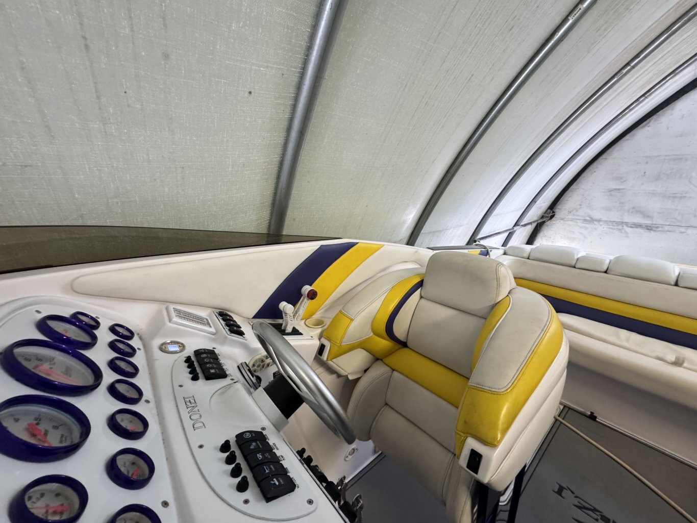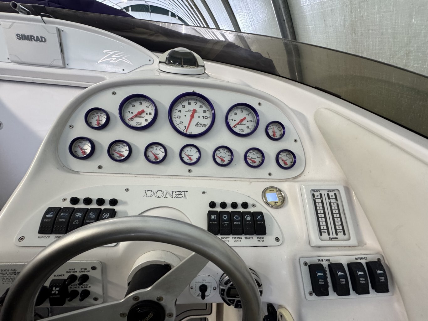 JUST LISTED! 2000 Donzi 38 ZX Daytona, Powered by Mercury 500 EFI's and Bravo Drives, 767hrs on Hull, 10hrs on Complete Engine Rebuilds, and Drive Service. This Boat Features Twim Mercury Racing 500 EFI's That Have Been Completly Rebuilt Top To Bottom, New IMCO Exhaust, Hardin Sea Strainers, IMCO Hydraulic Steering, Intergrated Rear Sum Platform, Large Rear Sun Pad, Spacious Cockpit Seating With Wide Rear Bench Seat, Dual Power Captains Bolster Seats, Power Adjustable Foot Rests, New Livorsi Gauges Summer 2025, New Simrad GPS Summer 2025, Sea Dek Flooring Thruout Entire Boat, JL Audio Sound System, Spacious Cabin With Ample Head Room Features a 4 Piece Kitchenette with Cook Top, Sink, Fridge and Microwave, Cabin A/C, Private Head, Large Wrap Around Seating Area and Forward V-Berth.