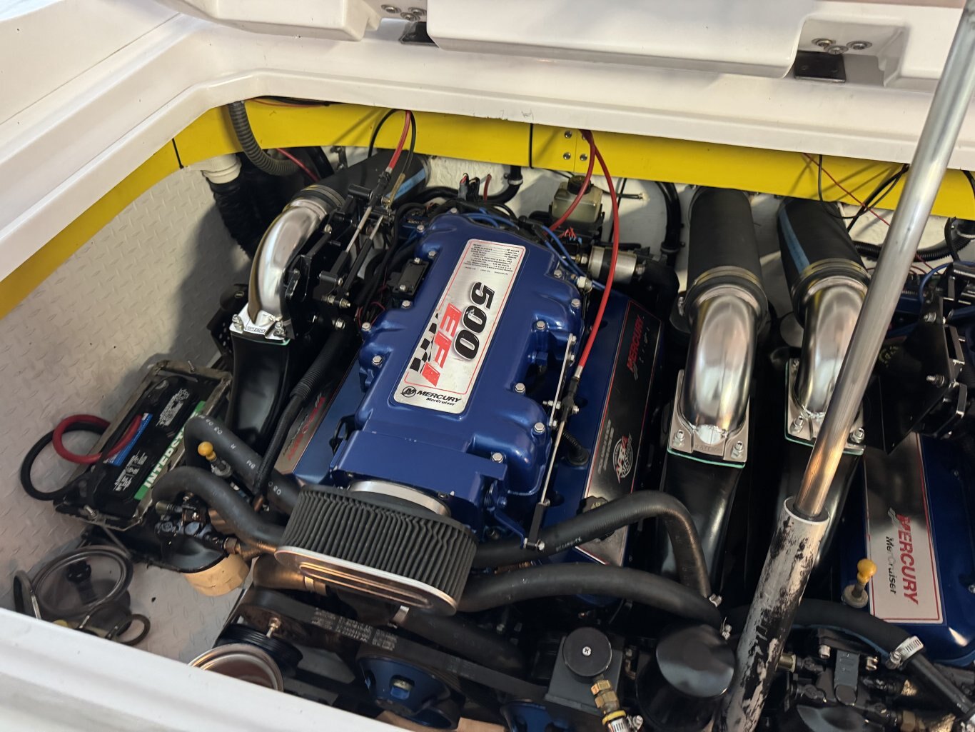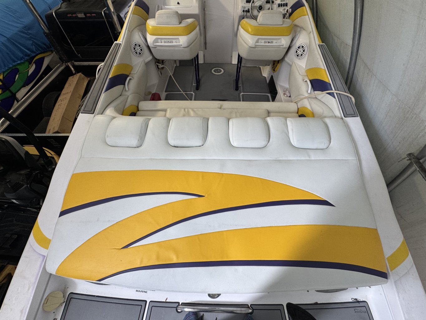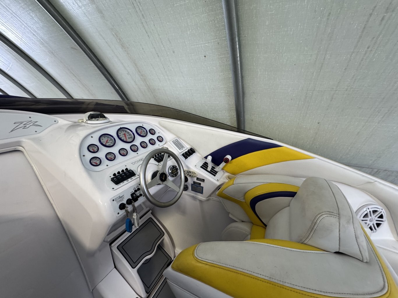 JUST LISTED! 2000 Donzi 38 ZX Daytona, Powered by Mercury 500 EFI's and Bravo Drives, 767hrs on Hull, 10hrs on Complete Engine Rebuilds, and Drive Service. This Boat Features Twim Mercury Racing 500 EFI's That Have Been Completly Rebuilt Top To Bottom, New IMCO Exhaust, Hardin Sea Strainers, IMCO Hydraulic Steering, Intergrated Rear Sum Platform, Large Rear Sun Pad, Spacious Cockpit Seating With Wide Rear Bench Seat, Dual Power Captains Bolster Seats, Power Adjustable Foot Rests, New Livorsi Gauges Summer 2025, New Simrad GPS Summer 2025, Sea Dek Flooring Thruout Entire Boat, JL Audio Sound System, Spacious Cabin With Ample Head Room Features a 4 Piece Kitchenette with Cook Top, Sink, Fridge and Microwave, Cabin A/C, Private Head, Large Wrap Around Seating Area and Forward V-Berth.