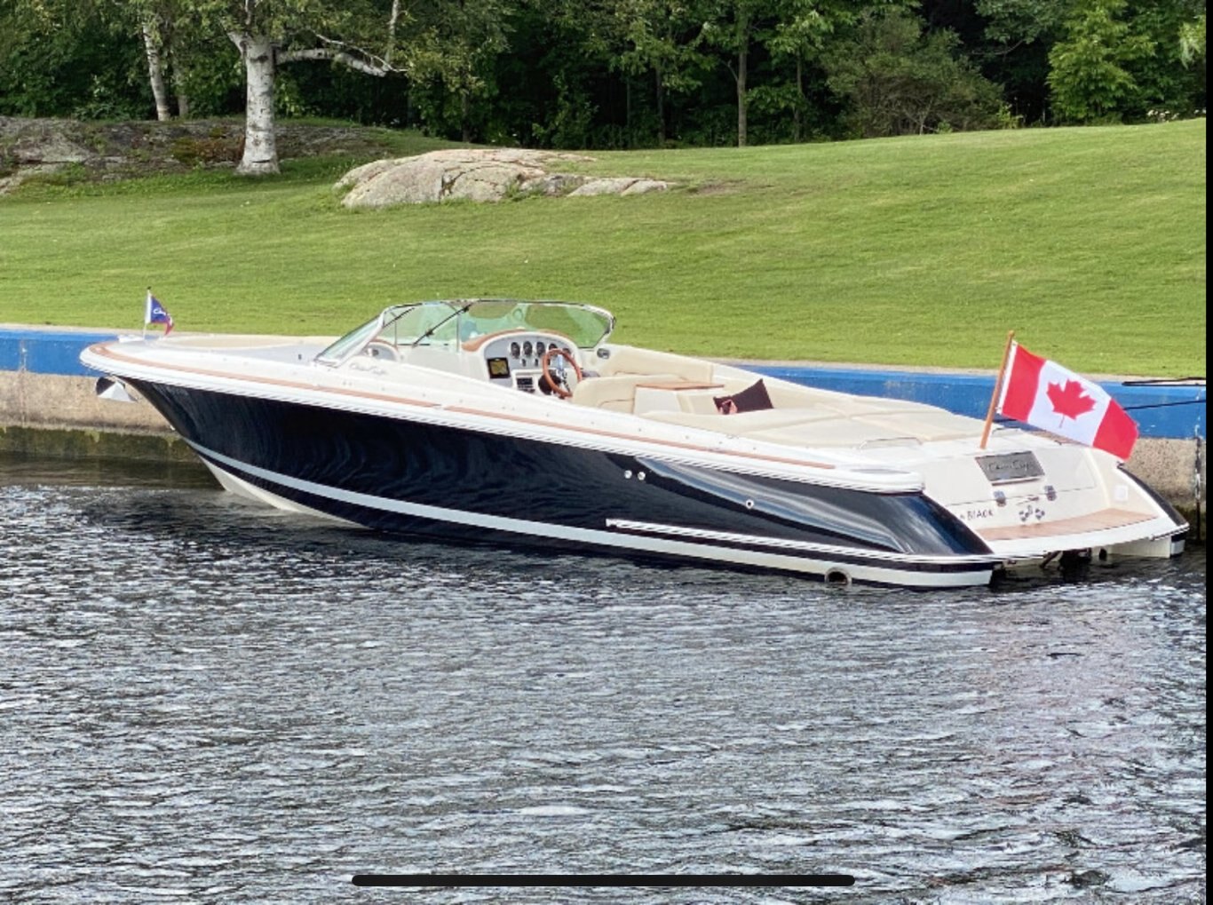 A Bowrider With Class and Style! 2008 Chris Craft Launch 28 Bowrider, Powered by Twin Mercury 350 Mag MPI's and Bravo 1 drives with aprox 200hrs. This Boat HAS IT ALL! Silent choice exhaust with side exits, wide 10' beam, Teak Heritage package, jet black with silver accents, windless anchor, built in battery charger, New in 2020 Ivory cream interior, 2020 full custom camper top enclosure plus full length boat cover, cockpit and bow covers all new in 2020, snap in carpets, power hatch, full head with pump out, Simrad GPS, Upgraded Stereo, large seating capacity, front and rear teak removable tables, turn heads with the classic lines and premium ride quality of this large family bowrider! Includes 2015 Aluminum tri axle bunk trailer.